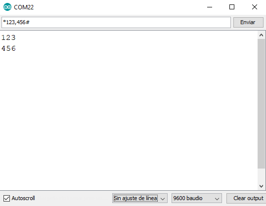 Para usarlo, solo tendremos que abrir el monitor serie y enviar la linea de datos para realizar la lectura y procesamiento de los datos.